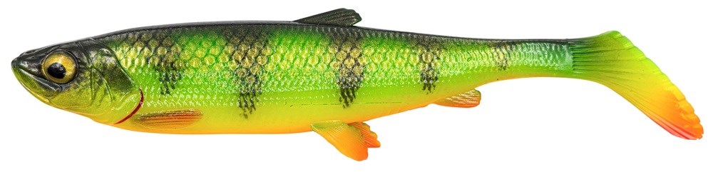 Voľné telo nástrahy s pádlovým chvostom sa vyznačuje dokonalými detailmi a fantastickou kolísavou a kopavou akciou. Široké ploché boky sa pri pohybe nástrahy vo vode trblietajú. Veľmi realistické tvarované plutvy dodávajú veľkému pádlovému chvostu skvelú sekundárnu akciu a pre väčšiu príťažlivosť je v nich umiestnená aj hlasná sklenená hrkálka. Vyrobené zo super mäkkého PVC materiálu s úžasnými farbami a vôňou vyvolávajúcou zábery. Konštrukcia s brušnou štrbinou na pripevnenie montáže pre dokonalú prezentáciu.