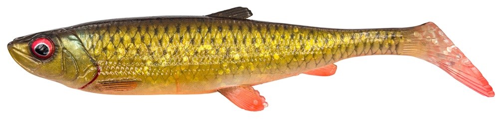 Voľné telo nástrahy s pádlovým chvostom sa vyznačuje dokonalými detailmi a fantastickou kolísavou a kopavou akciou. Široké ploché boky sa pri pohybe nástrahy vo vode trblietajú. Veľmi realistické tvarované plutvy dodávajú veľkému pádlovému chvostu skvelú sekundárnu akciu a pre väčšiu príťažlivosť je v nich umiestnená aj hlasná sklenená hrkálka. Vyrobené zo super mäkkého PVC materiálu s úžasnými farbami a vôňou vyvolávajúcou zábery. Konštrukcia s brušnou štrbinou na pripevnenie montáže pre dokonalú prezentáciu.