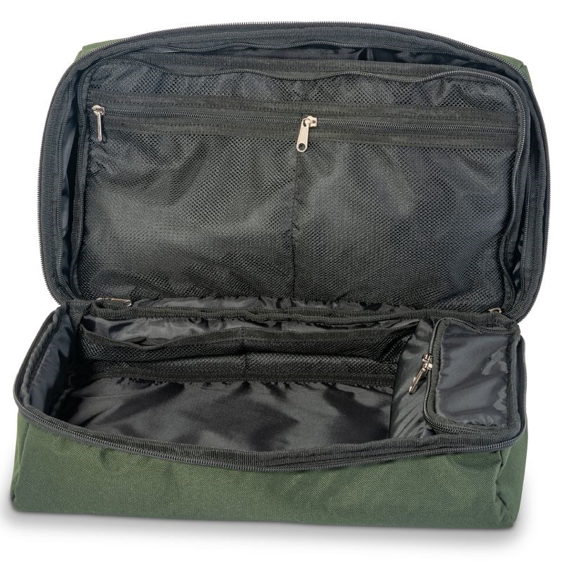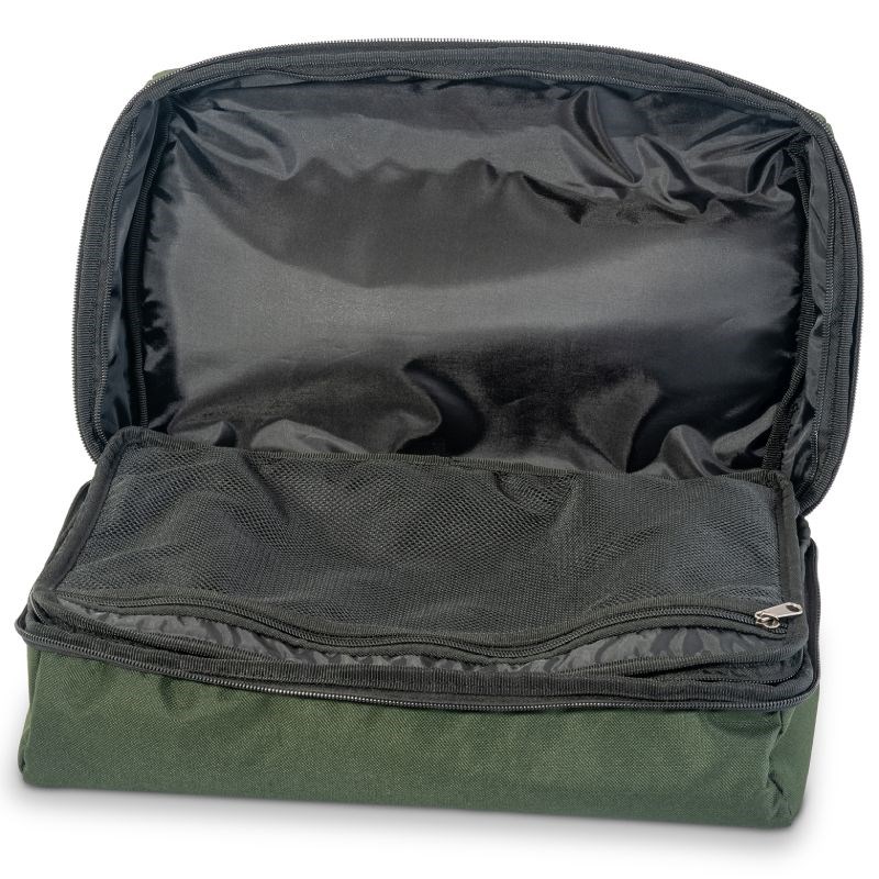 Ponúka dve priestranné hlavné komory a vo vnútri sa nachádza obojstranne plniteľné sieťované vrecko fungujúce ako prehľadná deliaca stena. Puzdro je vyrobené z odolného 600 × 300D polyesteru a vďaka vodotesnému dnu spoľahlivo chráni obsah aj pri nepriaznivých podmienkach.