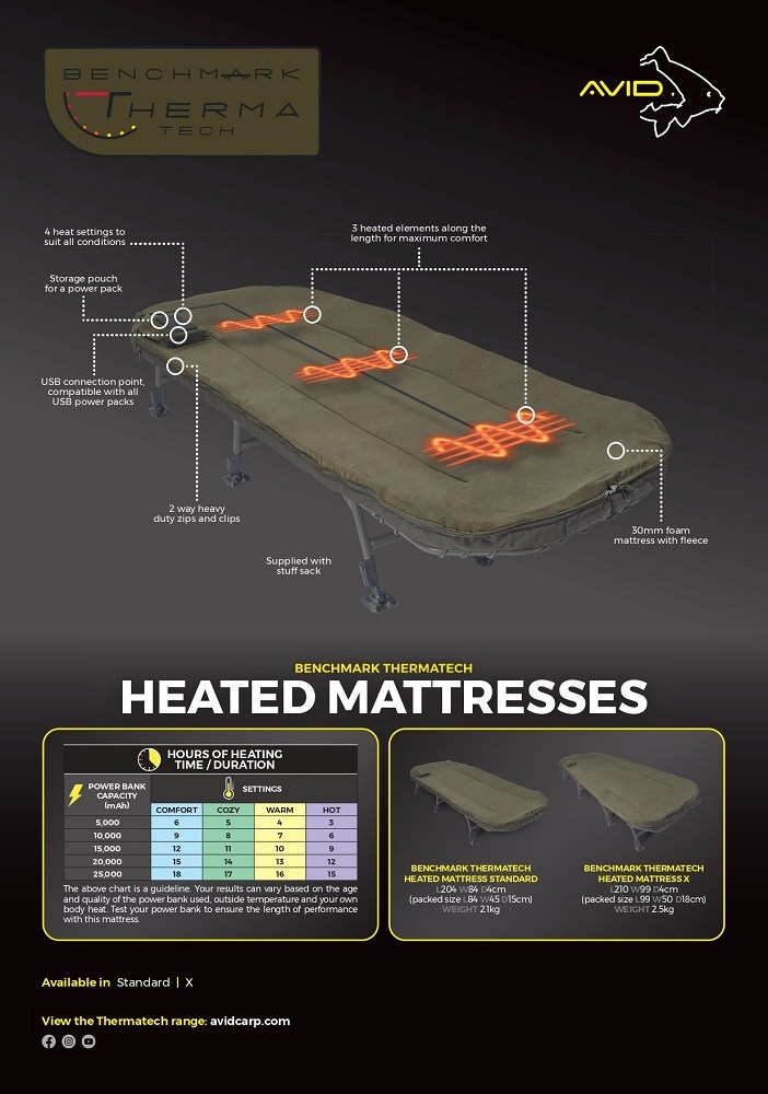Najnovšie technológie nám umožnili začleniť vyhrievané prvky do prídavného matraca, čím sa zdvojnásobí komfort v zimných mesiacoch alebo dokonca aj vtedy, keď vás môžu zastihnúť chladnejšie podmienky. Vďaka trom vyhrievaným prvkom rozmiestneným po dĺžke každého matraca to zlepšuje vyhrievacie vlastnosti našich už aj tak luxusne teplých spánkových systémov s ďalšou výhodou, že je možné spánkový systém predhriať alebo ďalej zahriať v extrémnych podmienkach. Mať pohodlý bez ohľadu na podmienky je bezpochyby najdôležitejším faktorom na brehu, najmä v chladnejších mesiacoch, vyhrievaný matrac zahrieva zdola nahor, zahrieva spodnú stranu vášho tela a udržuje vás v pohodlí a teple.