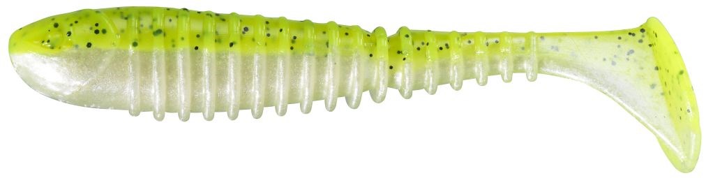 Realistická hlavička, zavalitější žebrované tělíčko vydávající vibrace, na hranici tělíčka a ocásku je mírné zúžení zajišťující přirozený pohyb ocásku, měkký materiál, který je vhodný pro všechny techniky přívlače (vertikální přívlač a lineární přívlač), to je FLEX RIB SHAD.