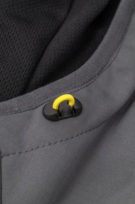 Vďaka vetru a vode odolnému povrchu sa nemusíte obávať ani silnejšieho vetra či dažďa, zatiaľ čo mäkká fleecová podšívka zaistí príjemné teplo. Praktické detaily ako elastické manžety, vysoký nastaviteľný golier a sťahovací pás pomáhajú minimalizovať prenikaniu vetra dovnútra.