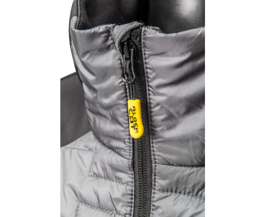 Hlavnú časť z mäkkého softshellového materiálu dopĺňajú zateplené, prešívané panely na hrudi a chrbte, ktoré zaisťujú dodatočnú tepelnú ochranu tam, kde je najviac potrebná.