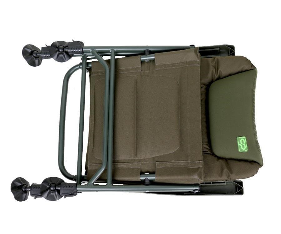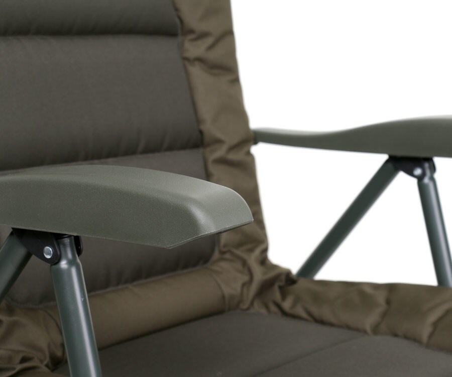 Vďaka opierke hlavy, ktorá je zapustená do operadla a mäkkej podšívke v sedacej časti je možné nastaviť kreslo do Vami prirodzenej polohy a využívať kreslo nielen na rybárske, ale aj rekreačné účely ako je kemp. Hlavným konštrukčným prvkom kresla je schopnosť rozloženia a zloženia iba jedným pohybom! Ďalším pozitívom je fakt, že kreslo je možné rozložiť na nerovnom a naklonenom povrchu, napríklad na betónových nádržiach, pričom o stabilitu sa starajú štyri teleskopické nohy so spoľahlivými a rýchlo nastaviteľnými klipmi. Nohy sú ukončené zväčšenými pätkami na kĺboch, ktoré zabraňujú klesaniu stoličky do mäkkých povrchov a zaisťujú ďalšiu stabilitu na naklonených a nerovných povrchoch. Veľkosť sklonu operadla je veľmi jednoducho nastaviteľná a to posúvaním podrúčiek, takže na to aby ste si nastavili sklon operadla, sa nemusíte postaviť zo stoličky. V prepravnej polohe je stolička Carp Pro Medium kompaktná a ľahko skladovateľná. Vynikajúce riešenie nielen pre kaprárov, ale aj vyznávačov lovu na feeder, plávaných či milovníkov relaxu a kempu.