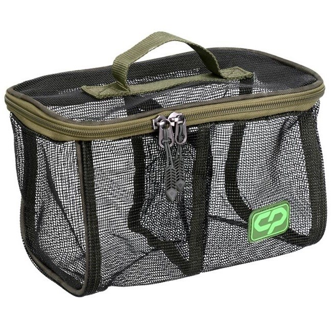 Vďaka prevedeniu sú vaše nástrahy dobre prevzdušnené a vysušené pomerne rýchlo. Vnútorný priestor je rozdelený na dve časti, taška je uzatvárateľná dvoma zipsami s elegantnými šnúrkami pre ľahkú manipuláciu. Prenáša sa látkovým uškom.