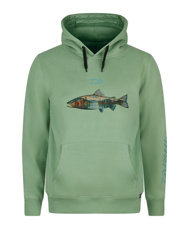Vysoko kvalitná mikina s kapucňou od značky DAIWA, určená nielen pre rybárov. Štýlový motív pstruha a kvalitný materiál zaručujú pohodlie, teplo a odolnosť pri nosení pri vode aj vo voľnom čase. Ideálna voľba pre chladnejšie dni – kombinuje funkčnosť, moderný design a spoľahlivú ochranu pred chladom.