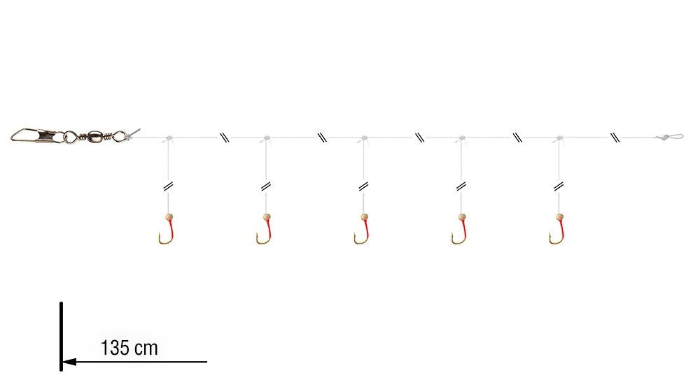 Extrémne jemný náväzec s malými háčikmi – ideálne, keď slede veľmi nelovia a chcú skôr malú nástrahu.