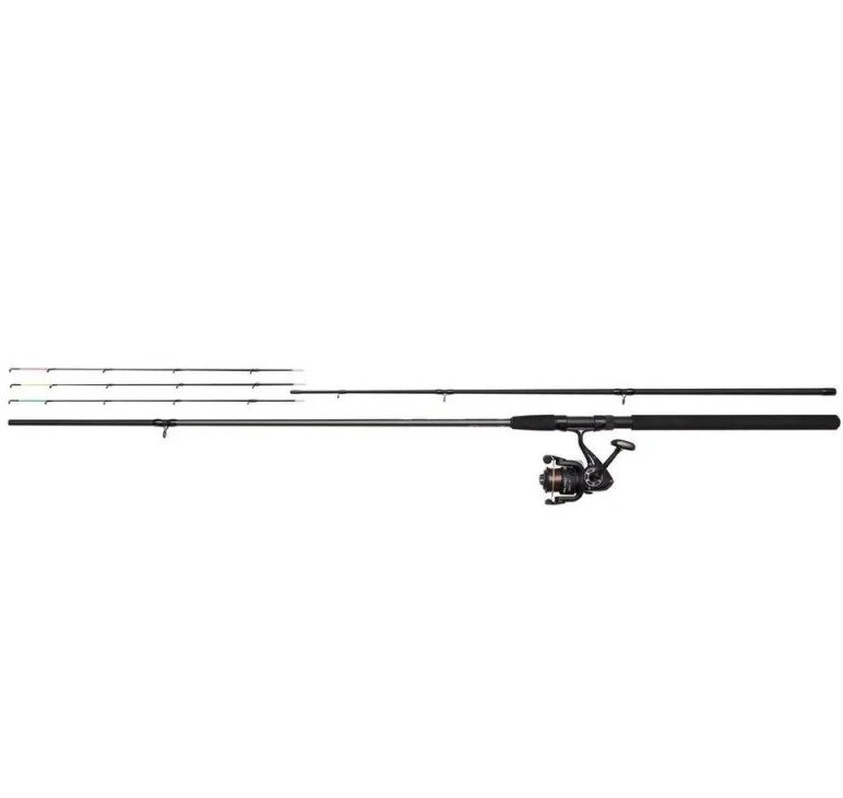 Každý prút je vybavený dvoma rôznymi špičkami s rôznou citlivosťou, takže sa môžete prispôsobiť konkrétnym podmienkam, a súčasťou sady je aj navijak s prednou brzdou veľkosti 3000 s už navinutým nenápadným tmavo hnedým vlascom 8 lb/0,28 mm.