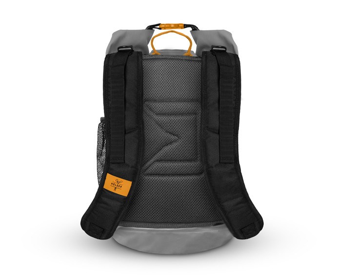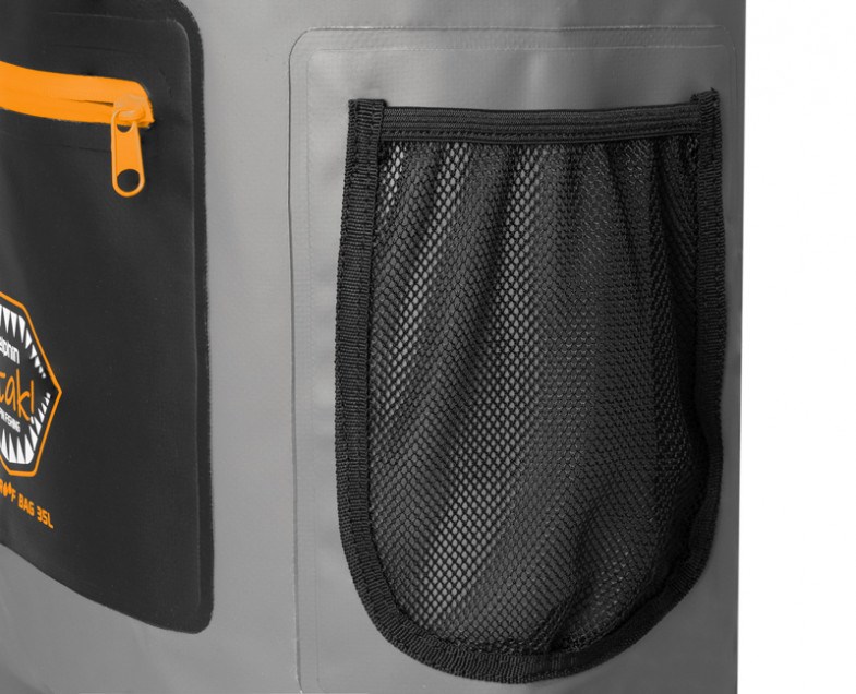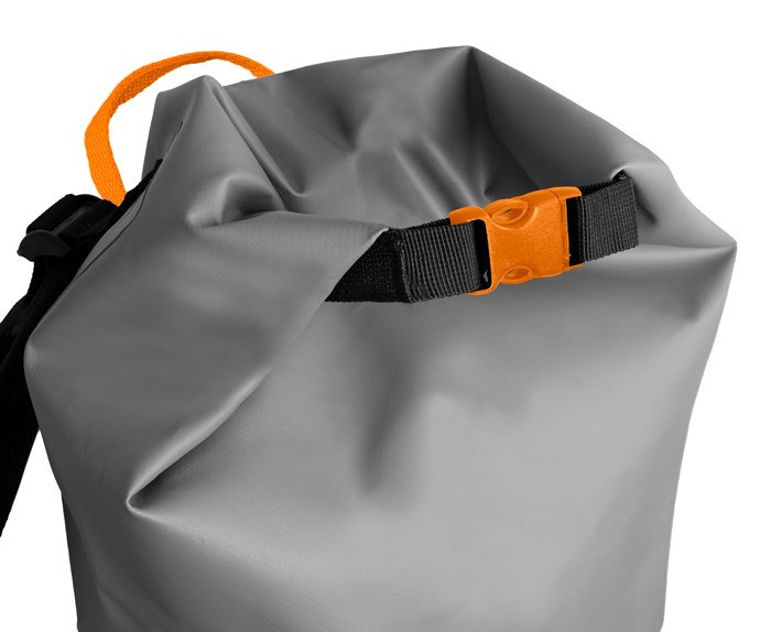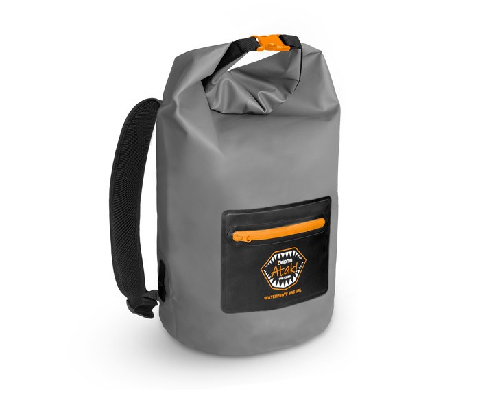 Je to praktický batoh jednoduchej konštrukcie a doplnený o odkladacie priestory, aby spoľahlivo slúžil a ochránil vaše cenné predmety pred vodou a vlhkom. Dostupný je v matnej sivej farbe doplnenej oranžovými prvkami, ktorý je ľahko rozpoznateľný, a preto je vhodný okrem rybolovu aj na ostatné outdoorové aktivity. Má polstrované ramenné popruhy a chrbtovú časť s logom Delphin čienej farby a doplnený je o prakctické ucho oranžovej farby na nosenie v ruke. Vpredu sa nachádza vodotesné vrecko s oranžovým zipsom a na boku nájdeme držiak na fľašu. Uzatváranie vrchnej časti je možné pomocou rolovacieho zapínania s 1 prackou oranžovej farby. Vnutorný priestor je doplnený o jedno vrecko na drobnosti. Jeho objem je 35l.
