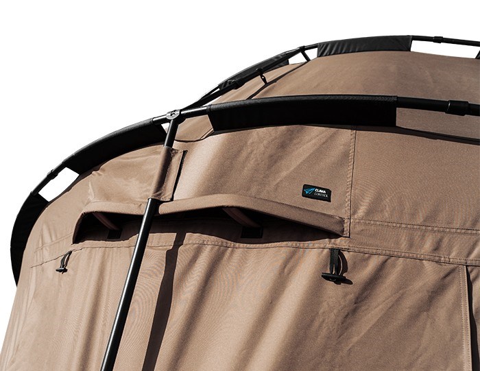 To najdôležitejšie na koniec. Bivak Delphin B-3 disponuje inovatívnym systémom CLIMA CONTROL, ktorý bol navrhnutý tiež dizajnérskym oddelením značky Delphin. Tento systém je tvorený dvoma vetrákmi na protiľahlých stranách (nad vstupnými dverami a nad zadným oknom). Vďaka tomuto dômyselnému systému je možné zabezpečiť prívod čerstvého vzduchu a odvod použitého v čase, keď nie je možné vetrať bivak pomocou veľkých okien. Určite ho oceníte najmä v noci, kedy výrazne napomáha znižovať roseniu vnútri bivaku. Celý systém je navyše jednoducho ovládateľný z vnútra bivaku.