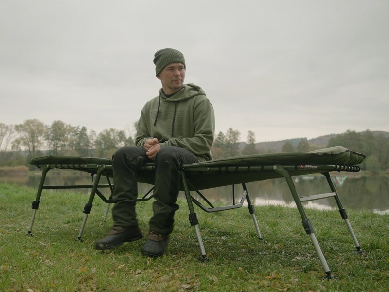 Matrac je po celej dĺžke potiahnutý mäkkým fleecom, ktorý je príjemný na dotyk a poskytuje príjemné teplo počas chladných nocí. Obvod matraca tvorí odolná 600D látka v olivovo zelenej farbe, ktorá zaisťuje vysokú životnosť a chráni okraje pred opotrebovaním. V kombinácii s ergonomickým tvarovaním a kvalitným prešívaním ponúka lehátko maximálny komfort počas odpočinku. Hlavová časť je pre ešte väčšie pohodlie zosilnená silnejším polstrovaním.
