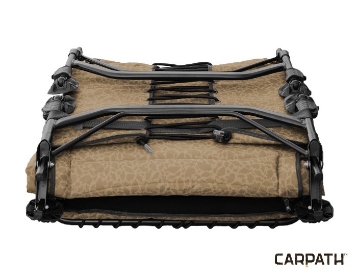 Osemnohá, pevná konštrukcia, ktorá tvorí základ tohto lehátka je zhotovená veľmi precízne s dôrazom na každý detail. Dosadacie plochy nôh sú veľmi robustné a flexibilné, čo im umožňuje prispôsobiť sa každej nerovnosti terénu. Pár nôh pod hlavou je dokonca blokovateľný, aby nedochádzalo k neželanému posunu. Na konštrukcii je osadený veľmi pohodlný matrac. Jeho uchytenie je vytvorené skĺbením gumených popruhov a extra vystužujúcej látky. To má za následok výrazné zníženie opotrebovania matracu aj po rokoch používania, pri zachovaní všetkých vlastností spojených s vysokou úžitkovou a komfortnou hodnotou. Práve vysoký komfort je tým pravým slovným spojením vystihujúcim túto vizuálne zaujímavú posteľ. Hrubý matrac je tvorený kombináciou látky 600D s kamuflážovým vzorom Carpath a príjemnou flísovou vrstvou prechádzajúcou stredovou časťou až k hlave. Pre transport je navyše posteľ vybavená dvoma popruhmi s konektormi na bokoch, ktoré uľahčujú jej transport.