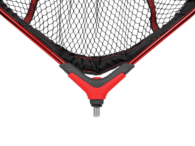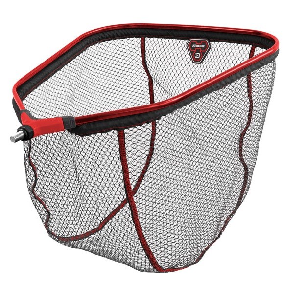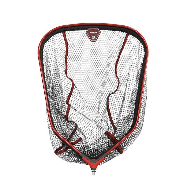 Táto bezchybne spracovaná feedrová hlava zaujme na prvý pohľad svojím netradičným tvarom. Vďaka jej precíznemu spracovaniu vám ponúkne maximálny komfort pri používaní. Pogumovaná čierna sieťka s červeným šitím je osadená v ľahkom, no veľmi pevnom hliníkovom ráme červenej farby. Vďaka pogumovaniu sieťka neprenáša nechcené pachy a rýchlejšie schne. Hlava sa ideálne hodí pre ľahkú sériu rukovätí ATOMA, no vďaka univerzálnemu závitu je vhodná pre väčšinu predávaných rukovätí.