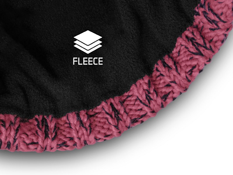Na prvý pohľad zaujme veľkým brmbolcom a elegantným pleteným vzorom. Vonkajšia časť je vyrobená z kvalitného akrylu so zaujímavou štruktúrou, zatiaľ čo vnútro tvorí mäkký, na dotyk veľmi príjemný česaný polyester v čiernej farbe.