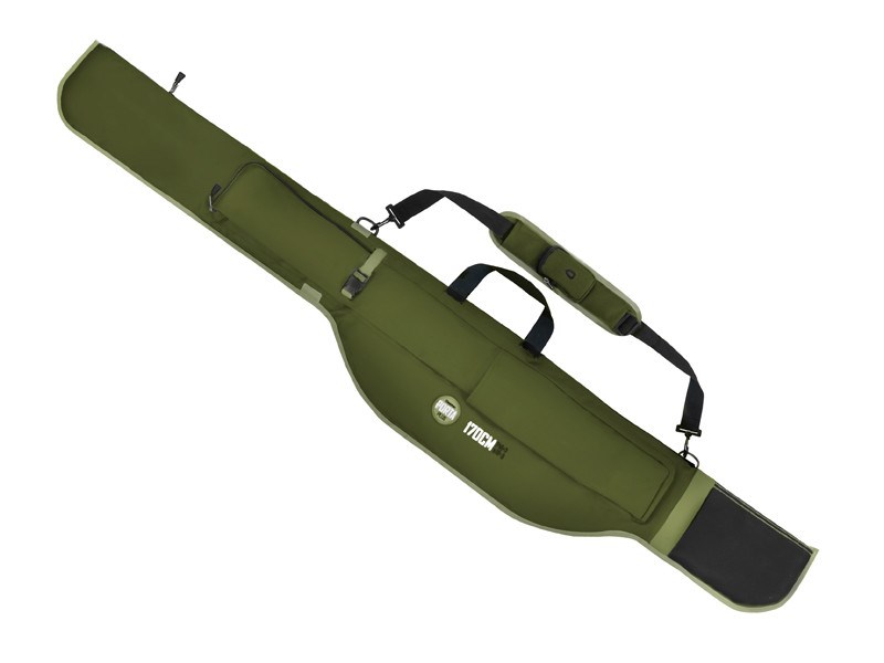 Puzdro je na všetkých stenách vrátane predeľovacej prepážky plne polstrované 6mm, mäkkou výstelkou. Tým pádom nehrozí pri transporte 2 prútov ich vzájomné poškodenie. Obe vnútorné komory na prúty sú fixovateľné pomocou suchého zipsu na ich vrchu.