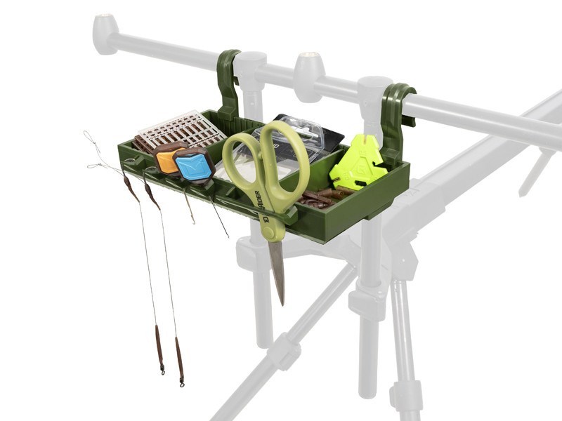Polička slúži na uloženie rôzneho malého rybárskeho príslušenstva alebo nástrah, čo v praxi znamená, že všetky dôležité drobnosti využívané pravidelne počas lovu budete mať vždy po ruke, resp. pripravené priamo pri vašich nahodených prútoch.