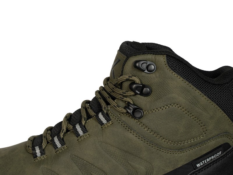 Vrchná časť topánky je vyrobená z kombinácie odolných syntetických materiálov a textílie, ktoré poskytujú chodidlu potrebnú oporu a zároveň prispievajú k dlhej životnosti obuvi. Vyšší strih topánok pomáha chrániť členok pred podvrknutím, zatiaľ čo vystužená špička a päta zvyšujú odolnosť topánky pri používaní v náročnejšom teréne.