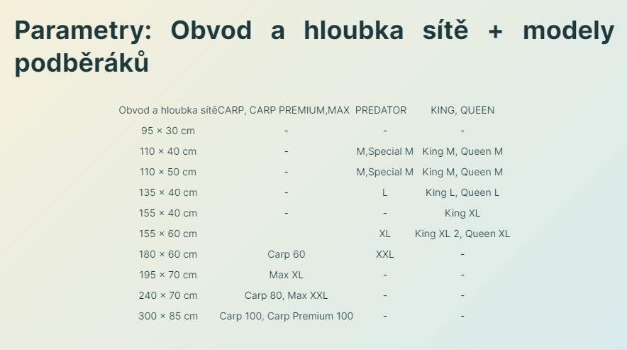 •300x85 cm: Obvod siete: 300 cm, Hĺbka siete: 85 cm - Kvalitná pogumovaná sieť na podberáky s 100 cm ramenami.