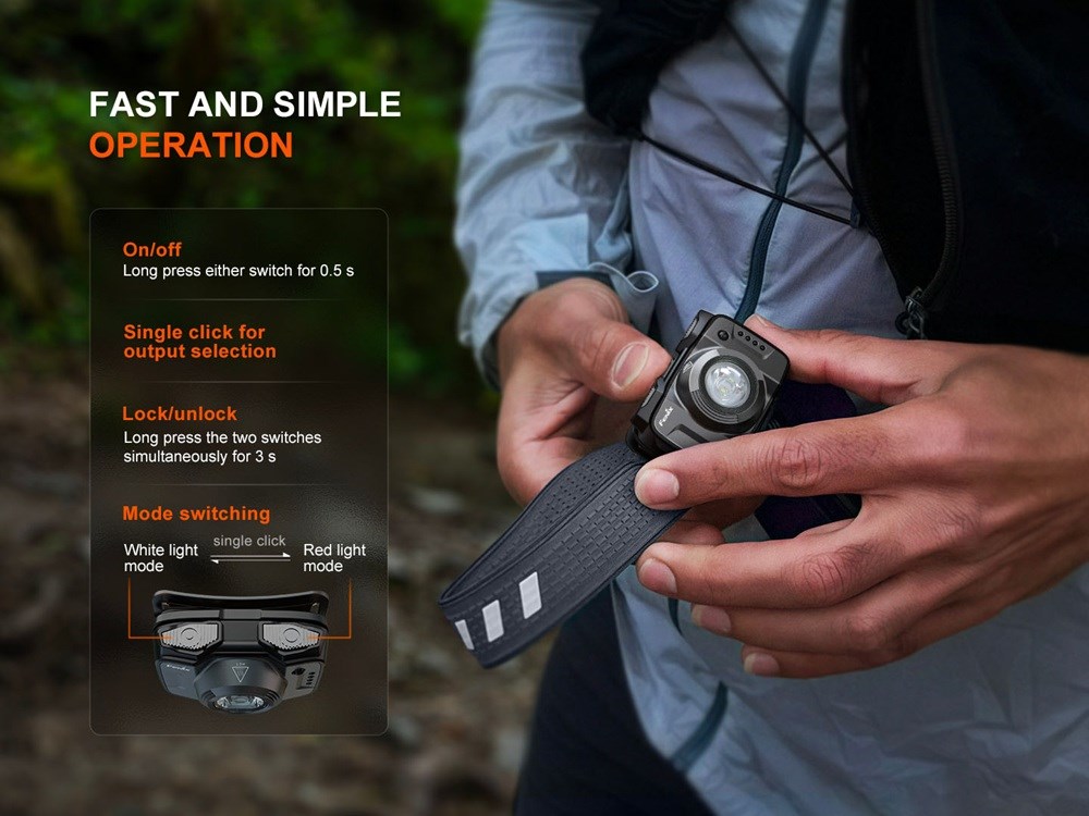K dispozícii je celkom 6 režimov výkonu, vrátane červeného blikania a stáleho červeného svetla. Čelovka si zachováva vodeodolnosť podľa štandardu IP66, takže bez problémov odolá aj silnému dažďu. Buďte vidieť za každej situácie! Reflexné prvky na popruhu zvyšujú vašu bezpečnosť pri pohybe za tmy. Zabudnite na skĺzanie čelovky. Silikónový prúžok na vnútornej strane popruhu zaisťuje dokonalé a pohodlné usadenie na hlave aj pri dynamickom pohybe. Či už bežíte nočným lesom, staviate stan za súmraku, chystáte návnadu na ryby pred úsvitom alebo potrebujete spoľahlivé svetlo v dielni, Fenix HL12R V2.0 je ideálnym spoločníkom.