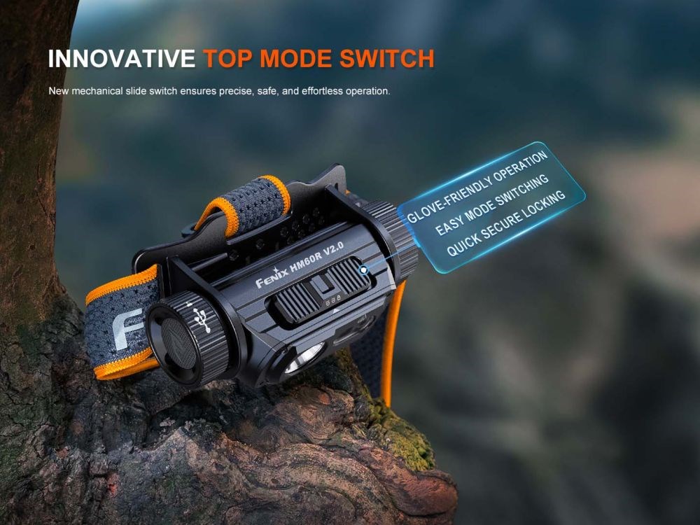•Inovatívny prepínač reflektorov na hornej strane čelovky s funkciou uzamknutia.