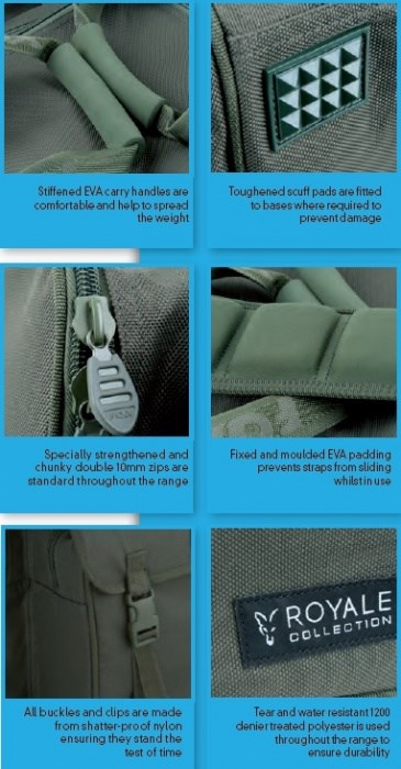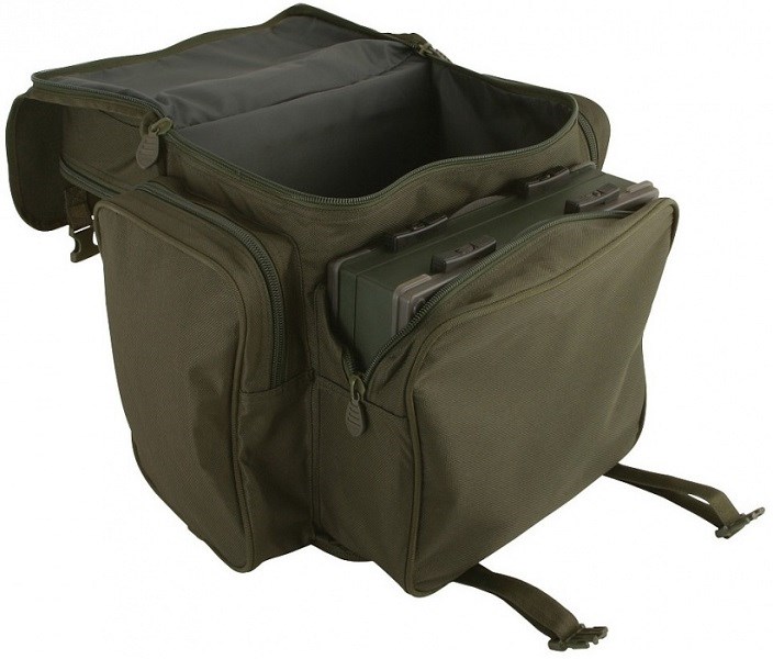 Batoh má 4 vonkajšie vrecká z toho predné vrecko pojme veľký double F. box, vrecko v hornej časti pojme strednej F. box a dve bočné vrecká sú určené pre uloženie puzdier na príslušenstvo a bižutérie.