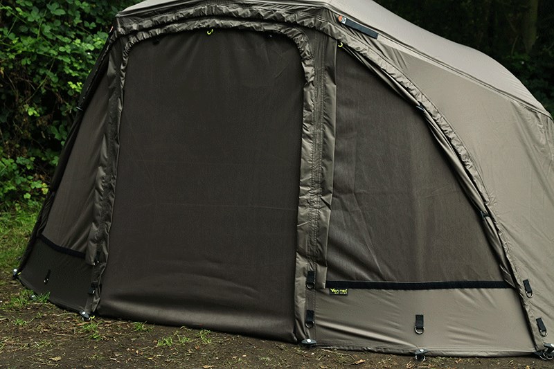 Je vybavený zipsom na prednej strane pre prípadne pripevnenie predného panelu Ultra Brolly Full Front alebo moskytiéry Ultra Brolly Camo Mozzo Screen.