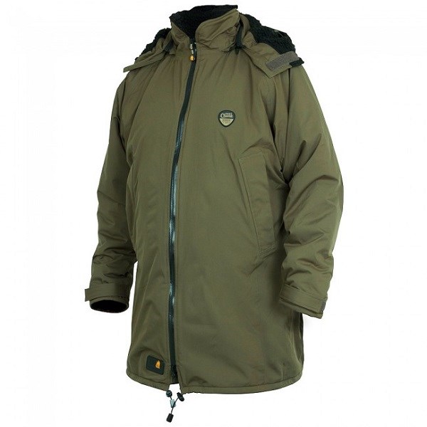 Na bundu bol použitý kvalitný vodotesný YKK zips s lemom vo vnútri. Odnímateľná kapucňa s plne nastaviteľným šiltom. Dvojitý pás so šnúrkou na utiahnutie, suchy zips s nastaviteľnými manžetami. Dve vnútorné a dve vonkajšie vrecká na zips. Túto bundu môžete nosiť ako na ryby tak do mesta, parádu s ňou urobíte všade kam ju vezmete!
