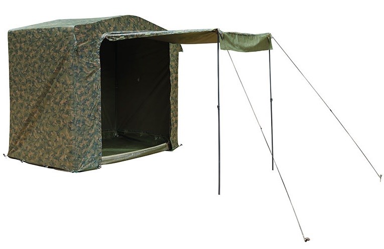 • Konštrukcia z oceľového rámu. Rovnako odolná priedušná polyesterová tkanina s hydrostatickou hlavou 5 000, aká sa používa na bivaku Royale XXL