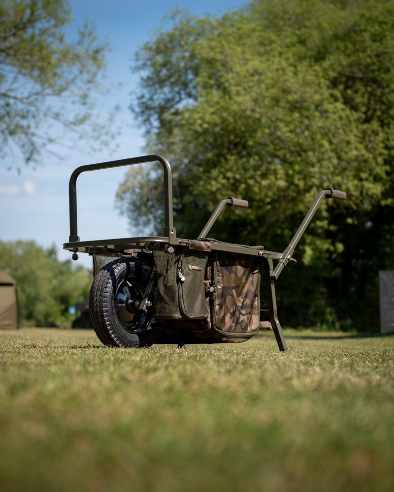 Vozík Explorer je plný možností a súčasťou dodávky je stredový vak Under Barrow Bag vo Fox Camo vzore, dve sieťované vrecká po oboch stranách kolieska ideálne na prepravu 5l kanistra s vodou a nástrah. Vozík Explorer bol navrhnutý ako perfektný prepravný systém na krátke jednodňové vychádzky. Stredový vak aj obe bočné vrecká sú vybavené bočným zipsom umožňujúcim rýchly a jednoduchý prístup k prepravovanému obsahu bez potreby skladať čokoľvek z vozíka.