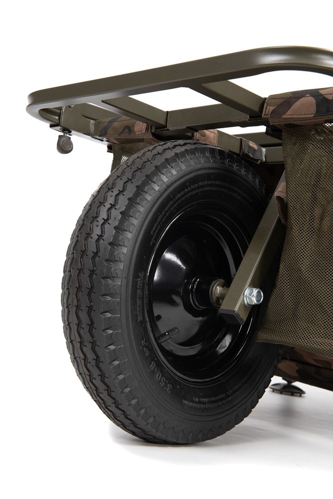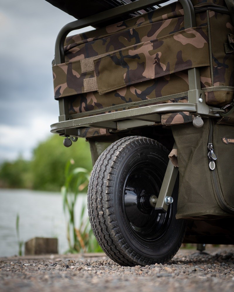 •Roztiahnuteľná predná zábrana – umožňuje zavesenie tašky Camolite Barrow Bag (v ponuke samostatne) z prednej strany vozíka v móde jednodennej vychádzky a prepravu lehátka. Pri love bez lehátka, jednoducho zatiahnete prednú zábranu a tašku Barrow Bag otočíte smerom k sebe. Dizajn vozíka zaisťuje jeho vyváženie v krátkom aj predĺženom usporiadaní.