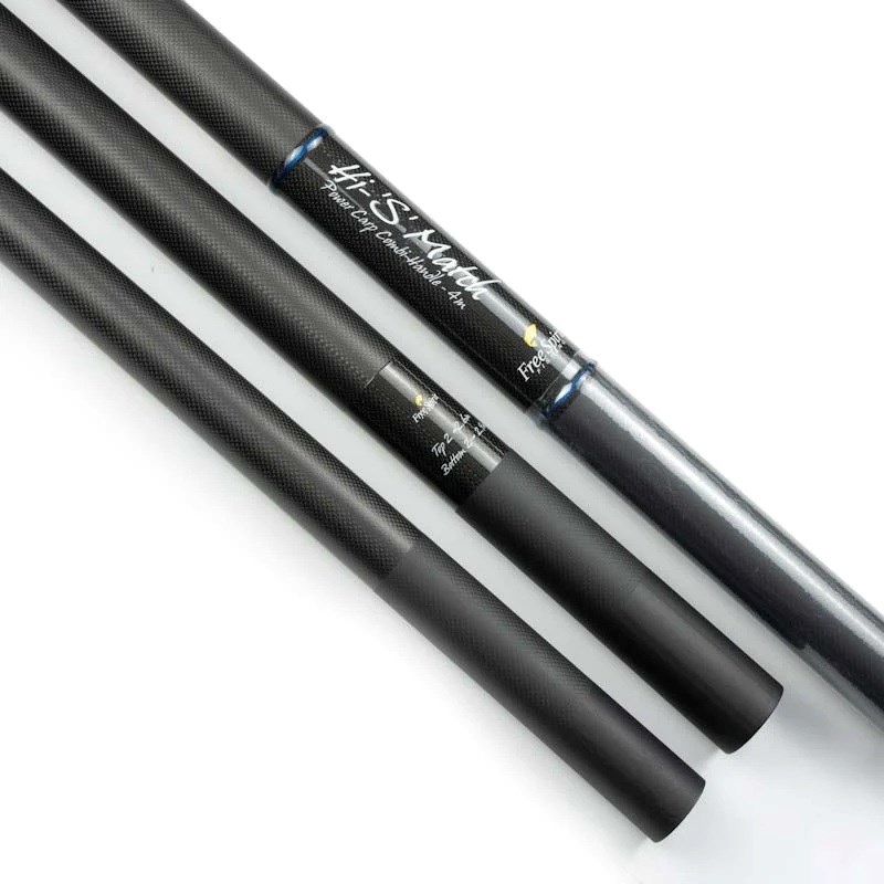 Je vyrobená z rovnakého japonského karbónu ako rad prútov Hi-S, čo znamená, že nekompromisná kvalita zaručuje extrémne pevnú a zároveň ľahkú rukoväť, ktorá sa oveľa lepšie používa. Je vybavená nerezovými závitmi na sekciách č. 1 a 2, takže rukoväť je možné použiť v dvoch rôznych dĺžkach. Druhá časť aj horná časť majú závity, ktoré umožňujú flexibilné použitie ako dvojdielna rukoväť alebo trojdielna dlhšia rukoväť.