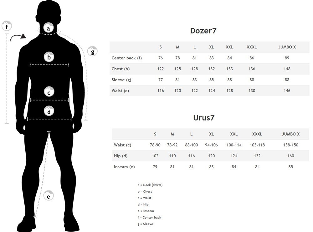 • Pri veľkosti Jumbo X sme sa snažili vytvoriť rozmer, ktorý padne čo najväčšiemu počtu ľudí s mohutnejšou postavou. Namiesto tradičného systému „XXXXX“ sme zvolili konkrétne miery, pri ktorých veríme, že poskytnú najlepšie padnutie pre čo najširší okruh zákazníkov.