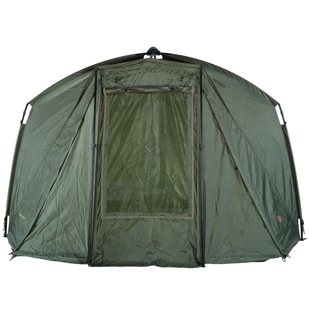 Vďaka inovatívnemu kĺbovému systému ho postavíte v priebehu niekoľkých minút, čo oceníte najmä pri nečakaných zmenách počasia alebo pri neskorom príchode na lovné miesto. Konštrukcia bivaku je vyrobená z pevných hliníkových rúrok s priemerom 16 mm, ktoré zaisťujú stabilitu aj pri silnom vetre. Odolný materiál s vodným stĺpcom až 10 000 mm poskytuje vynikajúcu ochranu proti dažďu a vlhkosti, čo zaistí suché a pohodlné prostredie za akýchkoľvek podmienok. Tento bivak je dodávaný vrátane druhého plášťa, ktorý oceníte v extrémnych podmienkach a pri výpravách v chladnom období. Dve veľké ventilačné okná v zadnej časti bivaku umožňujú cirkuláciu vzduchu, vďaka čomu sa vo vnútri nehromadí vlhkosť ani kondenzácia. Aj počas horúcich dní zostáva vnútorný priestor príjemne vetraný. Priestorové riešenie ponúka dostatok miesta pre jednu až dve osoby vrátane vybavenia. Súčasťou bivaku je odolná PVC podlaha na zips, ktorá chráni proti vlhkosti od zeme, zosilnené kolíky pre pevné ukotvenie aj v tvrdej pôde a praktická prepravná taška pre ľahký transport. Všetko je navrhnuté tak, aby bol váš pobyt pri vode čo najpohodlnejší a bez starostí.