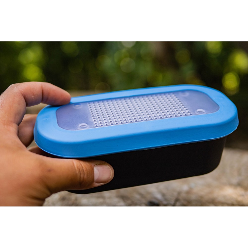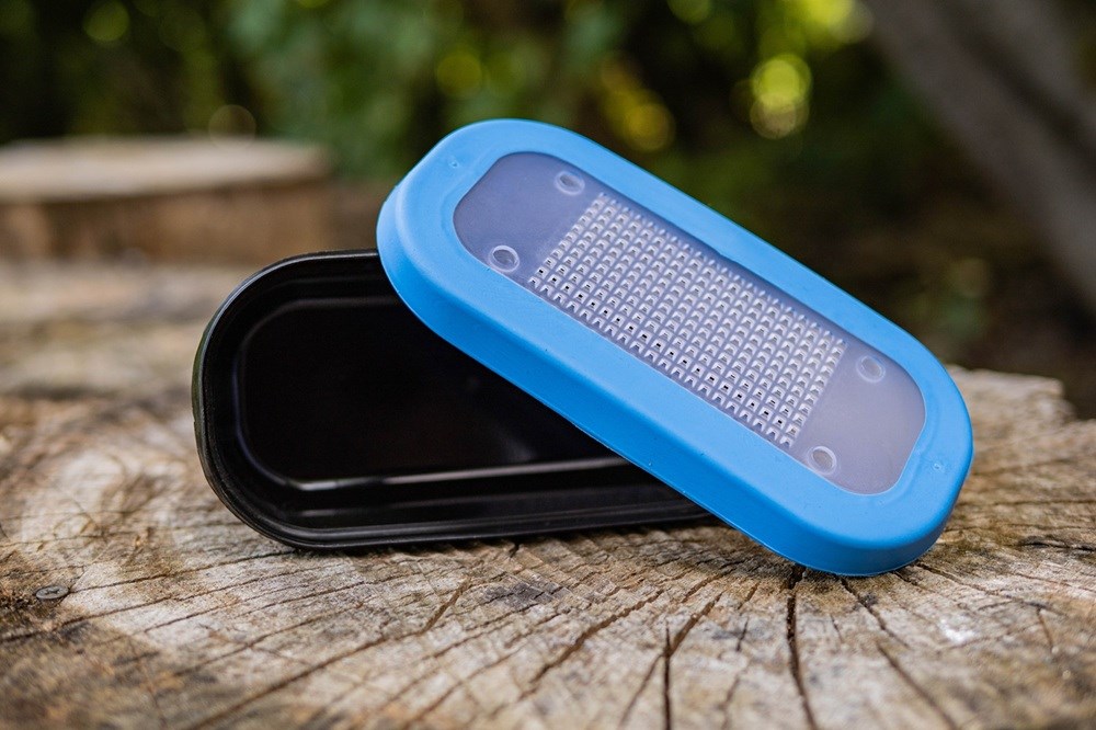 Perforované viečko krabičky má okraje vyrobené zo silikónu, takže sa ľahko otvára a uzatvára.