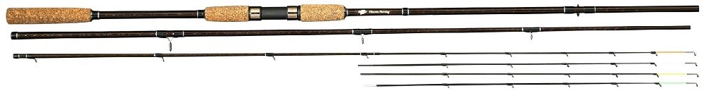 Prúty sú vyrobené z High Modul uhlíku spevneného kevralovým ovinom s úžasnou parabolickou akciou. Osadenie kvalitnými a spevnenými dvoj-ramennými SIC očkami pre presné a ďaleké hody. Prvotriedna technológia s použitím najkvalitnejších materiálov a samotná konštrukcia týchto kvalitných feederových prútov, Vám umožní zaznamenať aj tie najcitlivejšie zábery! Prúty sú dodávané so 4 špičkami (3x grafitová a 1x sklolaminátová) rôznych tvrdostí. Delená rukoväť je vyrobená z akostného drveného korku, ktorý je veľmi príjemný na dotyk.