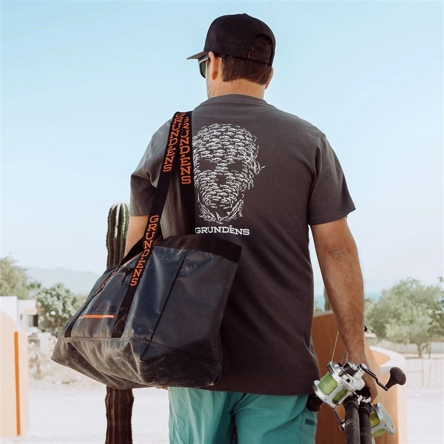 Grundéns Bait Ball je vyrobené zo zmesi bavlny a polyesteru, vďaka čomu poskytuje maximálny komfort pri nosení. Dizajn trička zdobí jedinečná grafika od Grundéns, na chrbte zobrazuje loviace tuniaky s kŕdľom rybičiek v tvare lebky. Toto tričko je vyrobené s dôrazom na kvalitu, aby vydržalo aj náročné podmienky a pritom zostalo mäkké a príjemné na dotyk.