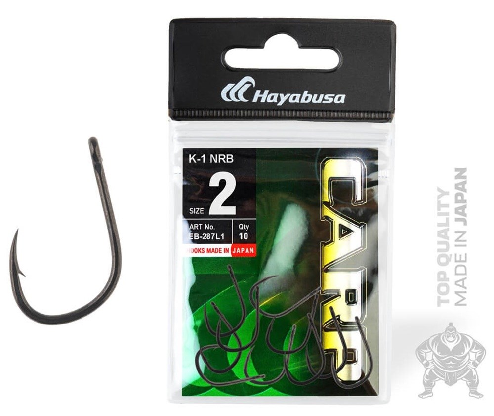 Háčik Hayabusa K-1 so širokým oblúkom aj pre objemnejšie nástrahy, ktorý zväčšuje dosah pri zábere a zaisťuje isté zaseknutie aj v hustejšej vegetácii alebo sťažených podmienkach. Skvele sa hodí na lov kaprov na boilies a pelety, ale aj na použitie s väčšími mäkkými nástrahami. Sú vhodné ako pre klasické kaprové montáže, tak aj pre moderné prezentácie nástrah.