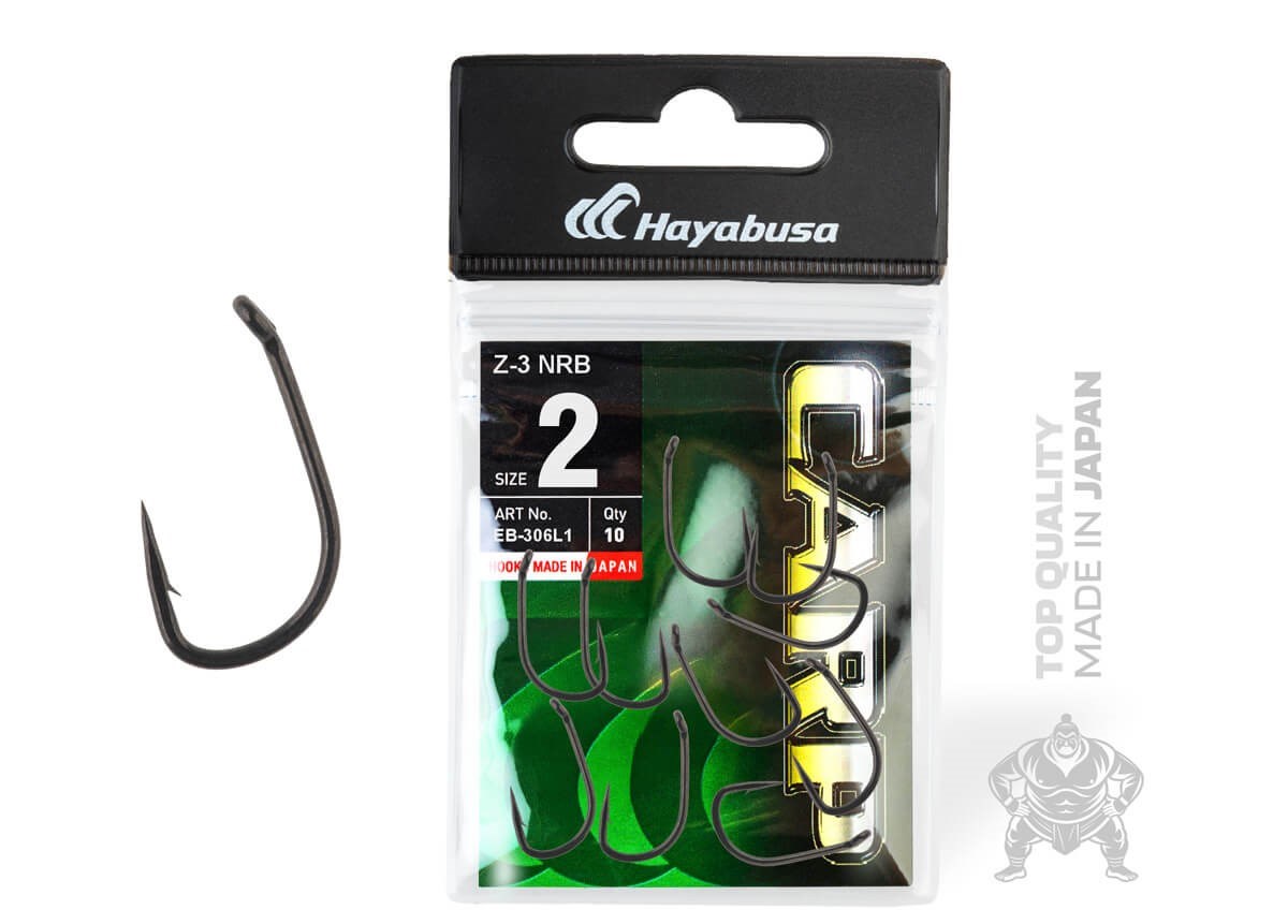 Haybusa Z-3, široké ramienko a mierny náklon očka háčika zaisťujú, že háčik vždy zasekne. Silný a tvrdý drôt zabraňuje tomu, aby aj malé háčiky pri zábere trofejného kapra alebo amura zlyhali. Sú vhodné ako pre klasické kaprové montáže, tak aj pre moderné prezentácie nástrah.