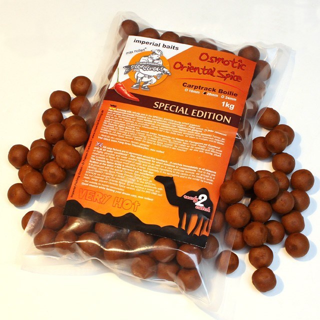 Díky použití vysoce atraktivní a ve vodě rozpustné moučky, se podařilo vytvořit tento výjimečný produkt. Na povrchu boiliesu hned po dopadu vrchní vrstva změkne a tím lépe pronikají atrakční látky do vodního sloupce. Osmotic Spice Boilies již od svého prvního testu ve vodě přináší nádherné úlovky rybářům!
