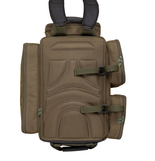 Priestranné hlavné vrecko je navrhnuté tak, aby bolo perfektne kompatibilné so všetkými taškami alebo puzdrami rady Defender Accessory. Vnútri hlavného vrecka sa nachádza vrecko so sieťkou napríklad na uloženie rybárskych dokladov, ale ponúka väčší priestor než len na rybárske doklady. Predná strana je vyrobená z tvrdej EVA škrupiny a ponúka maximálnu ochranu pri preprave a skladovaní. Po stranách sa nachádza jedno veľké postranné vrecko a na druhej strane sa nachádzajú dve menšie postranné vrecká. Všetky tieto vrecká na zips. V hornej časti sa nachádza väčšie vrecko na uloženie drobností, kŕmenia alebo dózičiek na nástrahy. Na spodnej a hornej strane sa nachádzajú dve madlá pre jednoduchšiu manipuláciu. Ďalej sa na spodnej strane nachádza odolná, nepremokavá vrstva. Batoh je ďalej vybavený polstrovanými a nastaviteľnými popruhmi, ergonomickým a polstrovaným chrbtom.