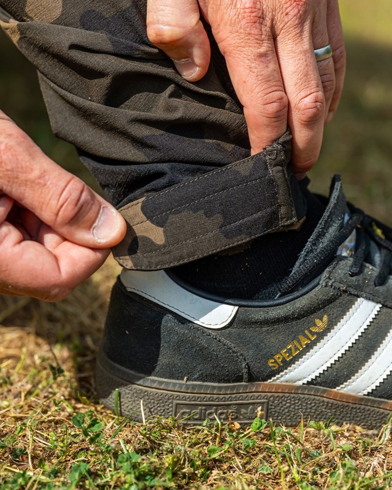 Nohavice sú ideálne na teplejšie mesiace - odvádzajú pot od pokožky a tkanina je utkaná tak, aby chránila pred štípancami od komárov. Zapínanie je na gombík a zips, po stranách sú spony na nastavenie veľkosti a nechýbajú ani pútka na opasok. vzadu a vnútorné vrecká na drobnosti. Dostupné v olivovo zelenej (S až XXXL) a dark kamo (S až 4XL).
