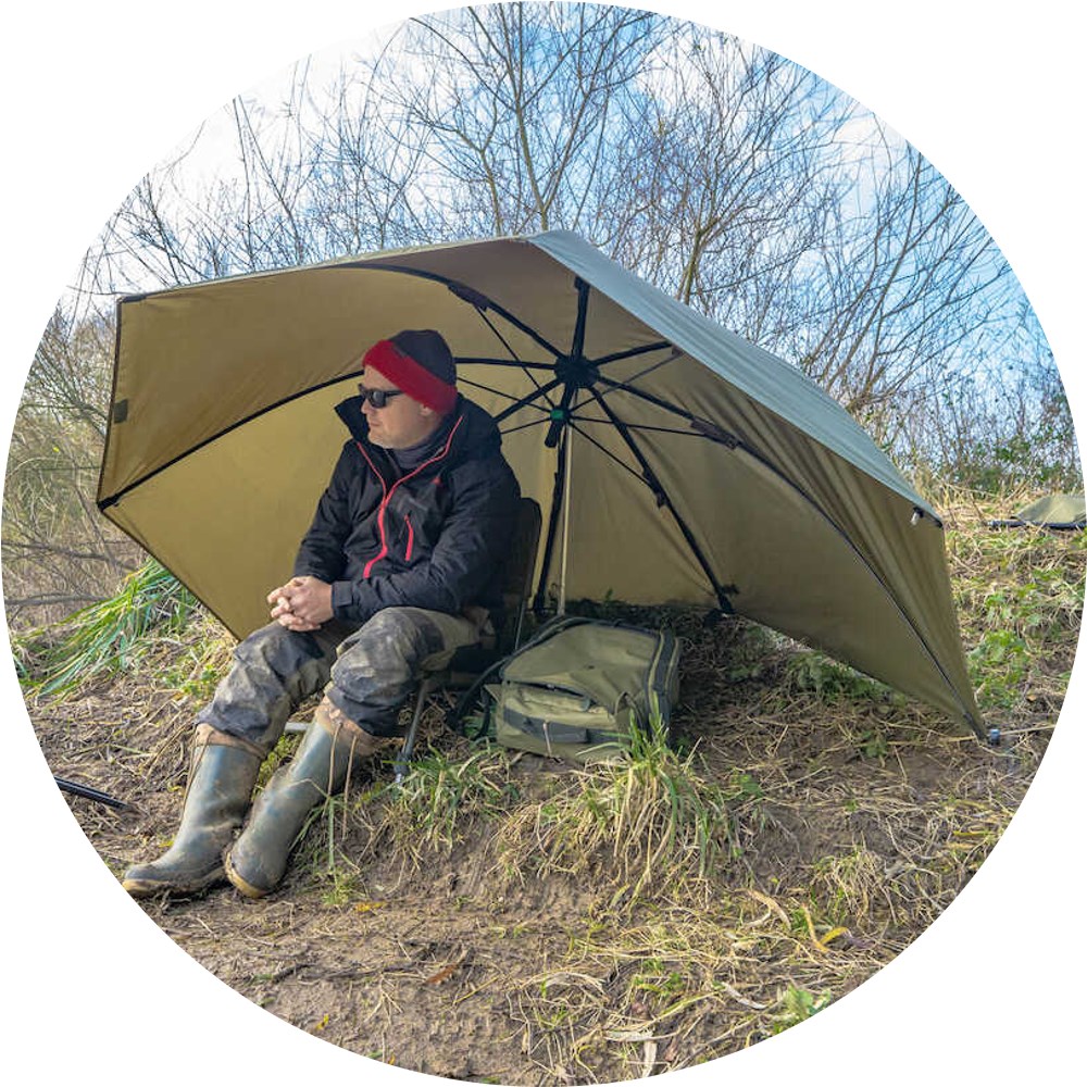 Dizajn brolly najlepšie zapadne na zvažujúce sa brehy, ale možno ho využiť aj na rovine. Vyrobené z ľahkých grafitových tyčí, ktoré sú odolné a potiahnuté Supa Lite látkou, ktorá má vodný stĺpec 5000 mm. Vnútorná palica má unikátny dizajn, ktorý umožňuje jej použitie v dvoch rôznych spojovacích bodoch, vďaka čomu je brolly možné využiť aj na najstrmších svahoch. Dodávané aj s kolíkmi.