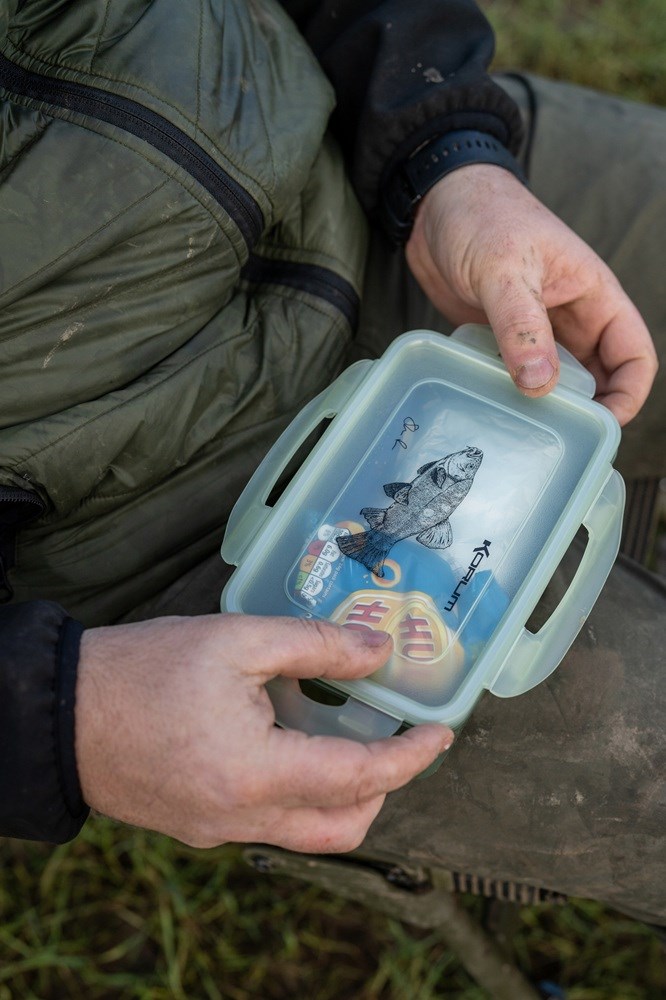 Pre celodenný rybolov je skvelé mať so sebou k dispozícii špeciálnu krabičku na jedlo. Táto vzduchotesná nádoba je vybavená odkladacím zásobníkom na desiatu vrátane nádoby na omáčku/korenie. Pod ním je dostatok miesta na sendviče, pečivo, nápoje a chipsy. Ponúka krásnu prácu rybárskeho umelca Steva Phillipsa. Nádherný rybársky darček.