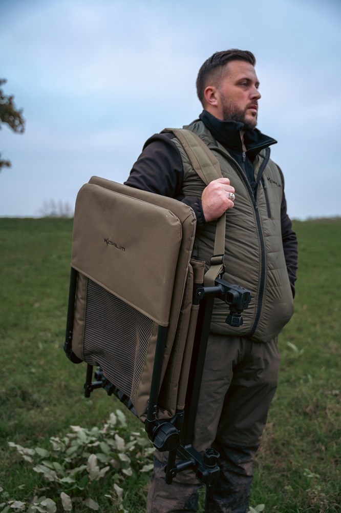 Model Progress je stále vybavený našou patentovanou konštrukciou vertikálnych nôh s pevným rámom pre extra stabilitu a ľahké nastavenie nôh. V kombinácii s príslušenstvom Korum Any Chair získate dokonalé feederové kreslo. Matrac je podoprený naším materiálom Supa Lite STRETCH, ktorý zaisťuje lepšiu priedušnosť a pohodlie. Samotné sedadlo má odnímateľnú čalúnenú časť pre jednoduchú údržbu. Nohy sú pri preprave držané elastickými pútkami. Doplnené nastaviteľným polstrovaným popruhom pre ľahký transport. Štandardne vybavené odpruženými teleskopickými nohami S23.