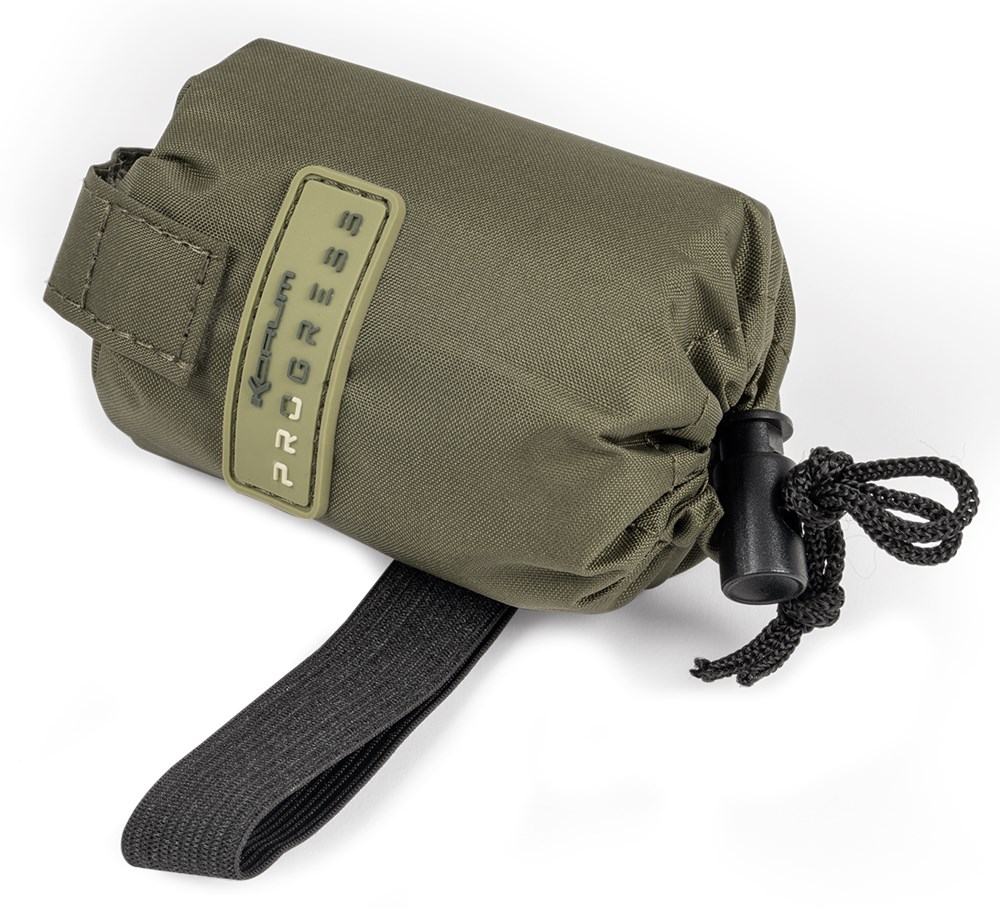 Kompletný s upevňovacím popruhom a pružnou sieťovinou. Rozmery 8 cm x 6 cm. Tkanina 150D PU Flex.