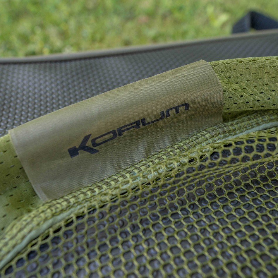 Pružinový mechanizmus je možné ovládať iba palcom jednej ruky. Podberáková hlava môže byť použitá s akoukoľvek rukoväťou s 3/8" závitom. Mäkká sieťka. Obvod z nylonu s logom Korum. Pripojovací bod pre karabínu alebo magnety.