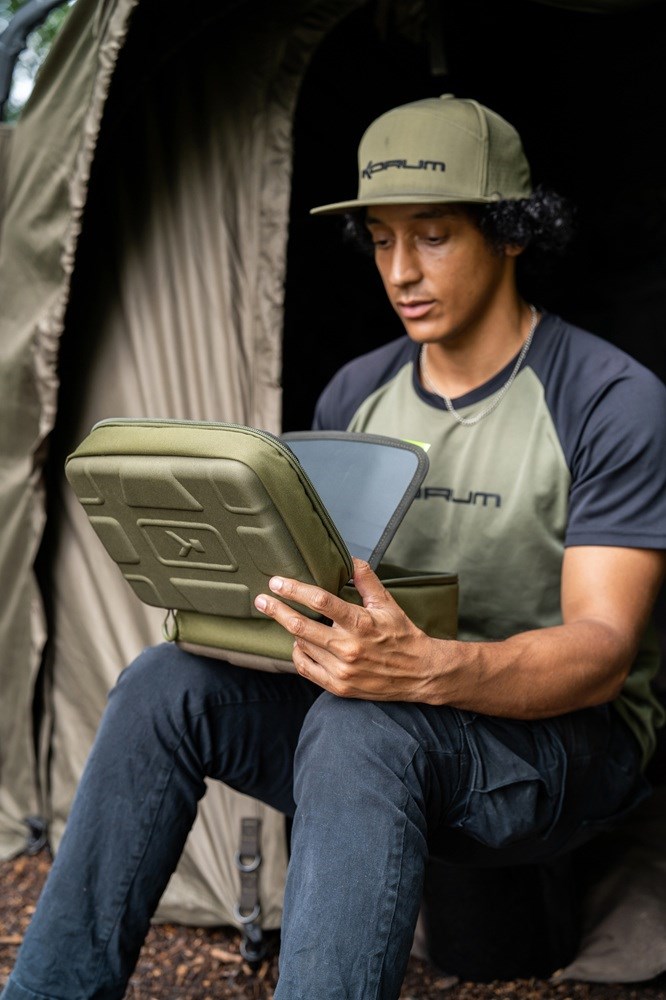 Obsahuje prepážku s koncovými vreckami na drobnosti, do ktorých môžete bezpečne a prehľadne uložiť balíčky háčikov a ďalšie koncové vybavenie. Je vyrobená s použitím pevného veka a dna z tvarovaného materiálu EVA a je tiež dimenzovaná na rad krabičiek a príslušenstva Tackle Blox.