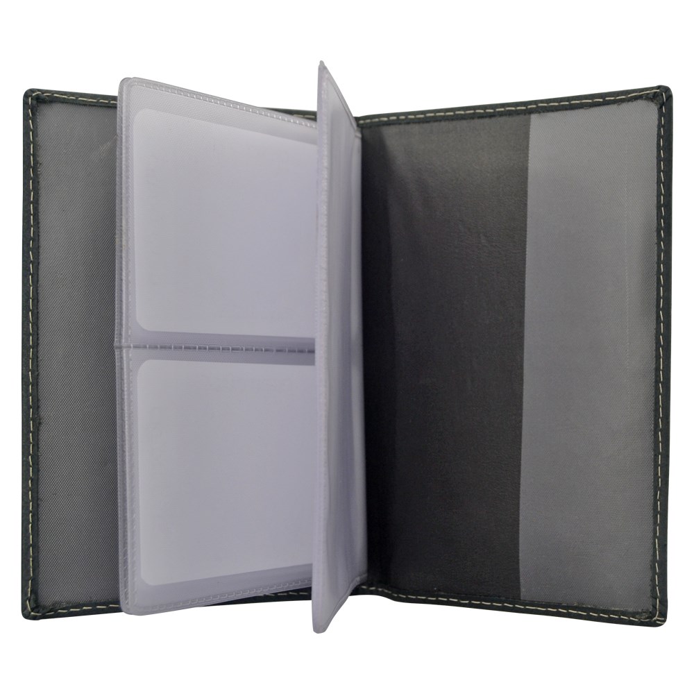 Kožené puzdro na doklady, veľkosť 14x10cm, 4 priesvitné dosky na doklady a 2 listy dosiek s 4 priehradkami na karty.