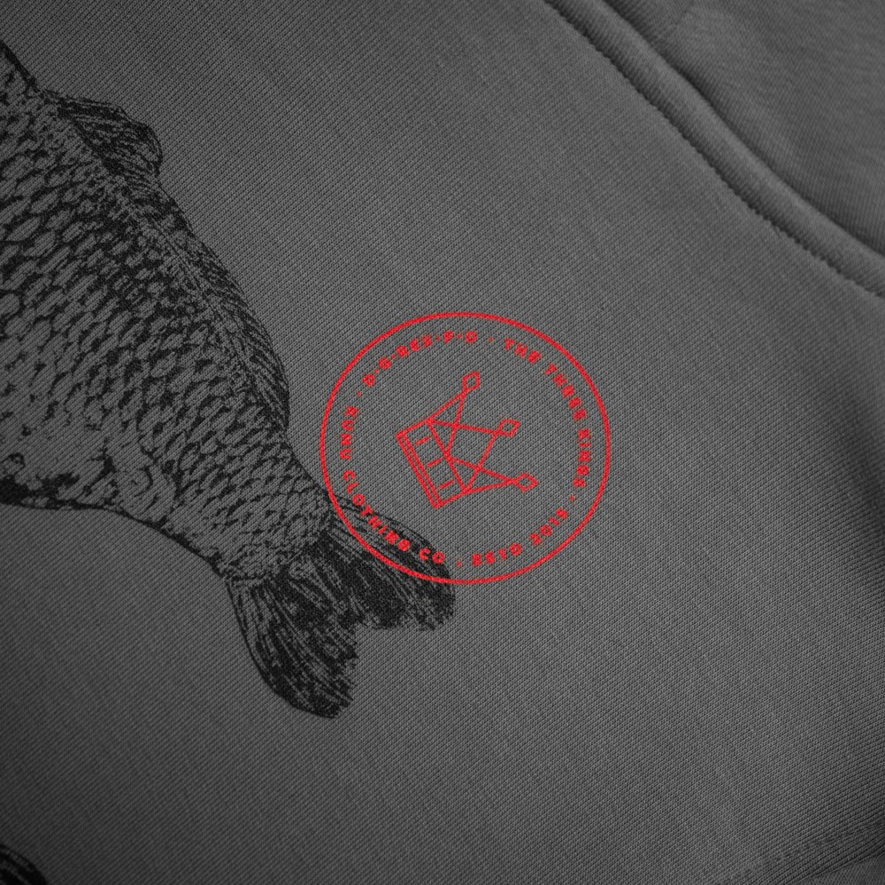 Naša mikina s kapucňou 3 Kings bola ručne vyrobená technikou známou ako „pointilizmus“, ktorá využíva milióny drobných bodiek na vytvorenie svetlých a tmavých plôch. Oslavujeme 3 druhy kaprov kráľovských, ktoré všetci lovíme. Trojfarebná sieťotlač na super mäkkej organickej látke s gramážou 320 g vo farbe „bridlicovo šedej“ s tkanými bočnými chlopňami.