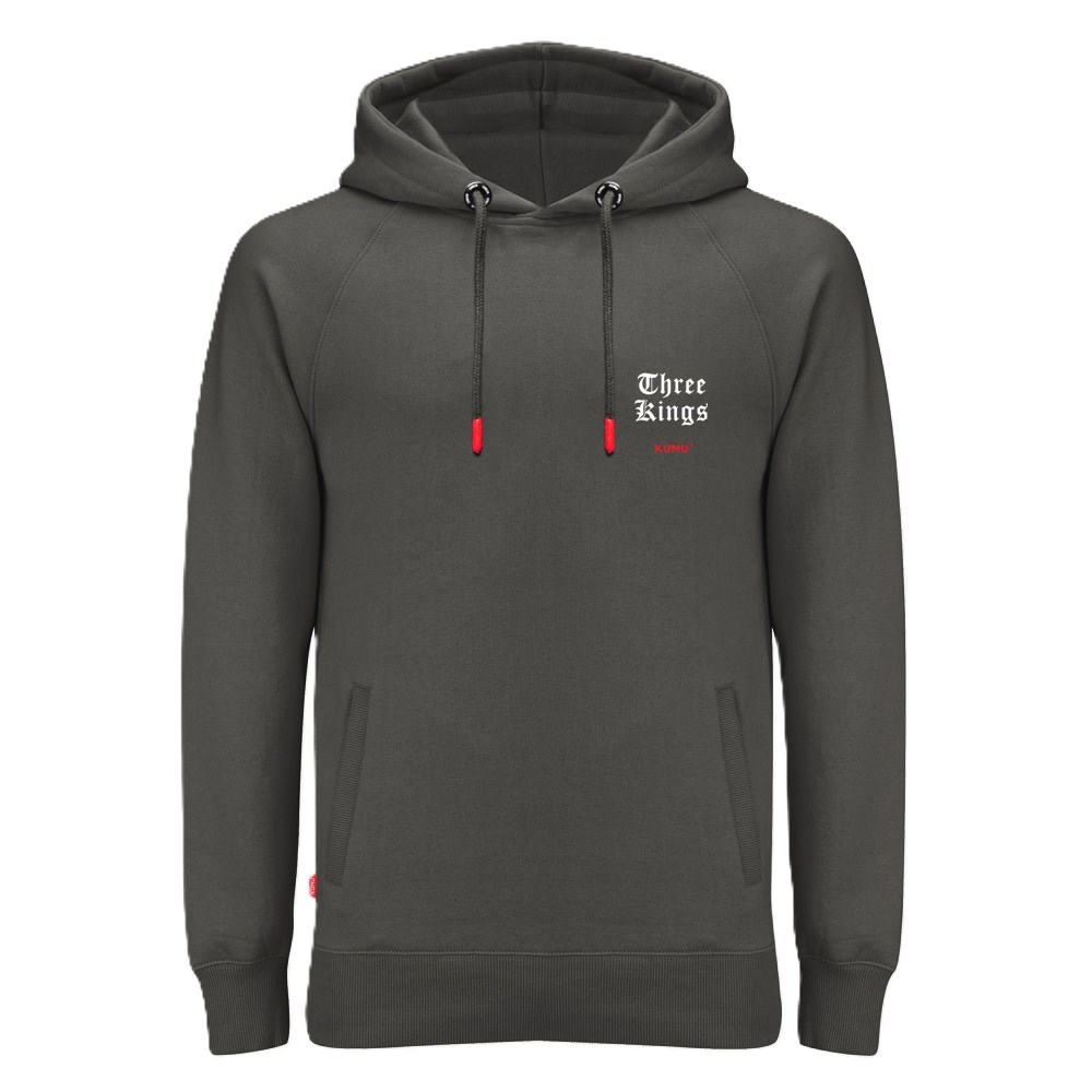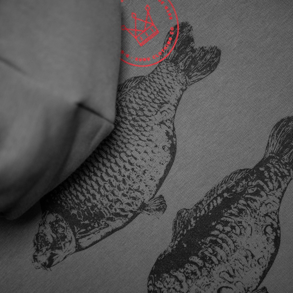Naša mikina s kapucňou 3 Kings bola ručne vyrobená technikou známou ako „pointilizmus“, ktorá využíva milióny drobných bodiek na vytvorenie svetlých a tmavých plôch. Oslavujeme 3 druhy kaprov kráľovských, ktoré všetci lovíme. Trojfarebná sieťotlač na super mäkkej organickej látke s gramážou 320 g vo farbe „bridlicovo šedej“ s tkanými bočnými chlopňami.